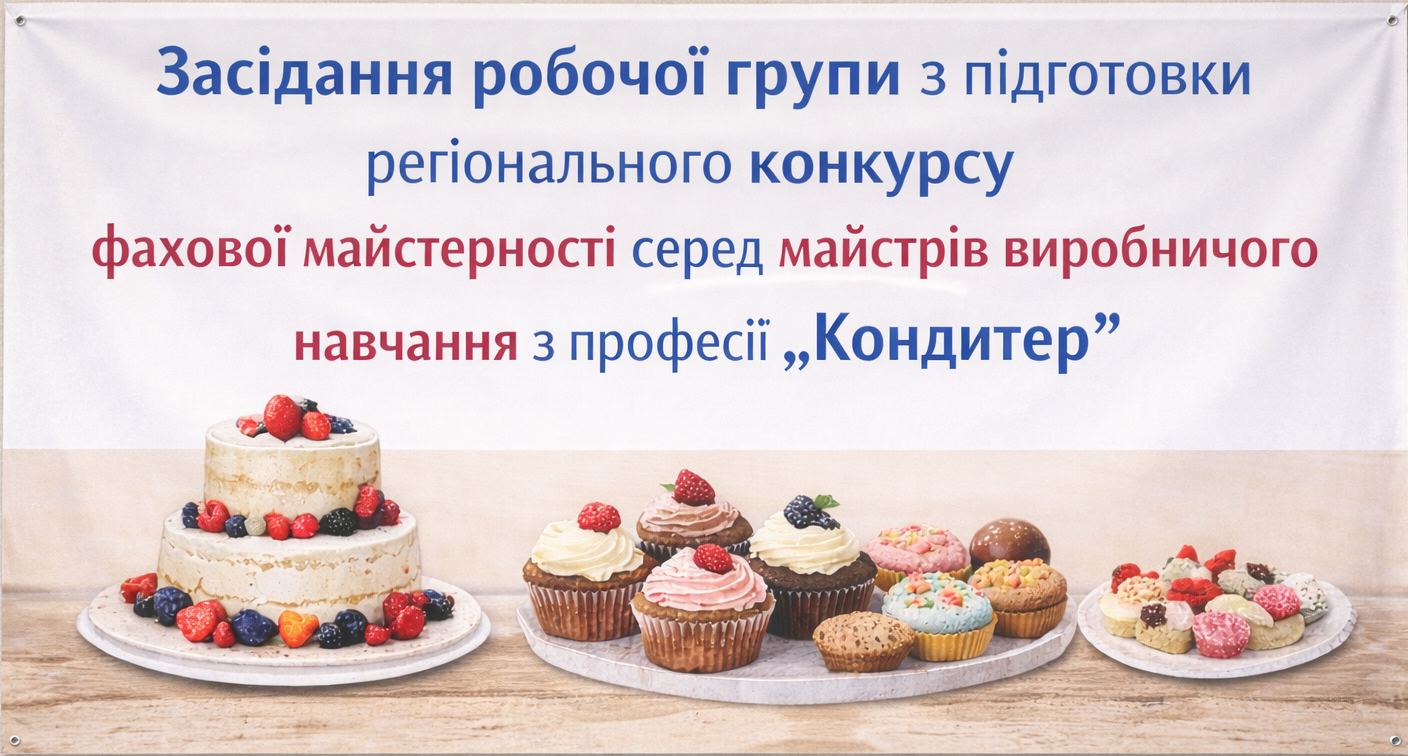 10 лютого 2026 року відбулося перше засідання робочої групи за участю представників 17 закладів професійної освіти Полтавської області з метою обговорення організаційних та методичних засад проведення регіонального конкурсу фахової майстерності з професії „Кондитер” серед майстрів виробничого навчання.