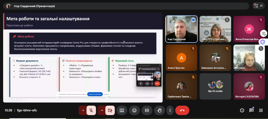 З вітальним словом та ознайомленням із порядком денним виступила Ірина Долина, директор НМЦ ПТО у Полтавській області; модератором заходу була Наталія Бойко – методист НМЦ ПТО у Полтавській області