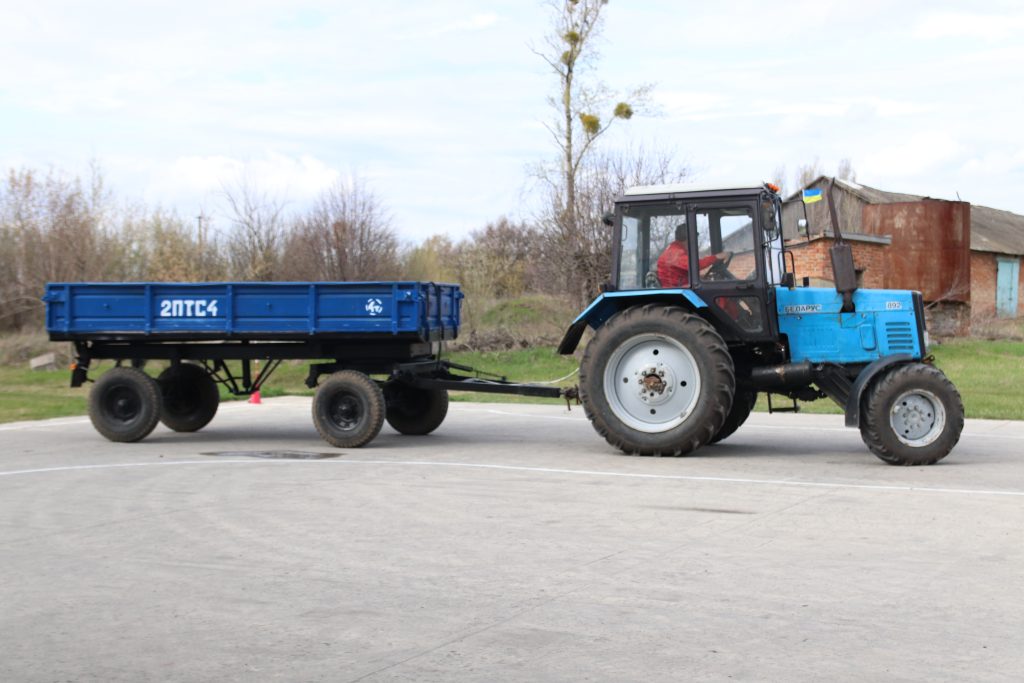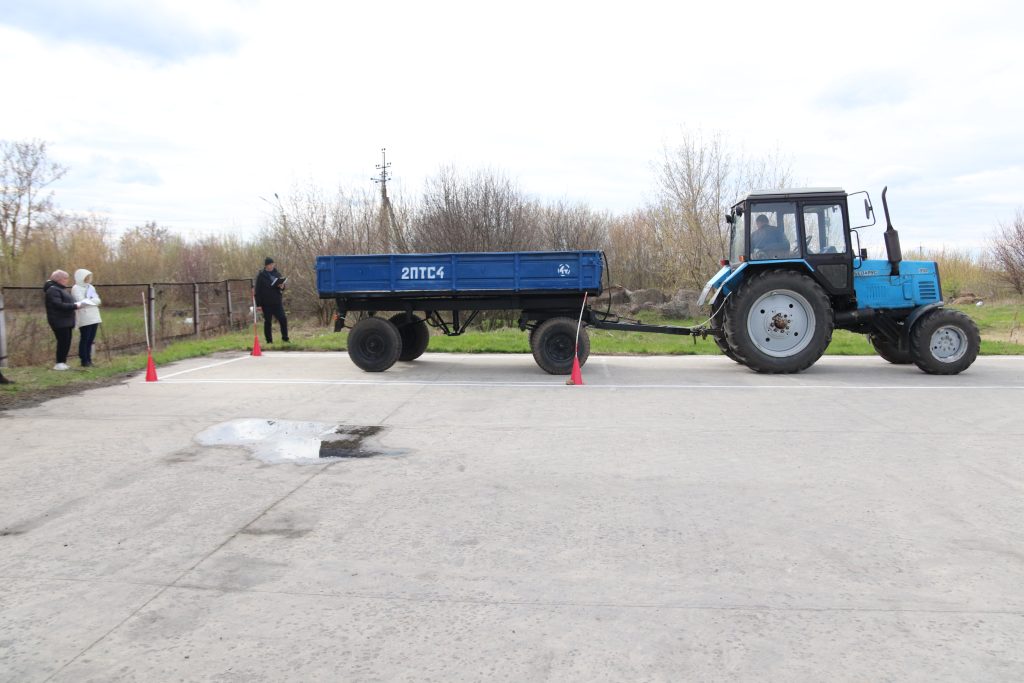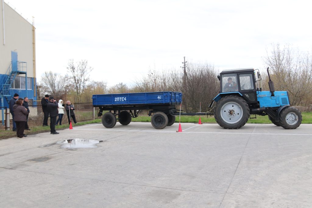 Практичний тур полягав у перевірці навичок і вмінь оранки земельної ділянки площею 0,08 га на тракторі МТЗ – 892 із начіпним плугом ПЛН-3-35 та заїзд заднім ходом з причепом 2ПТС-4 в умовний гараж під кутом 90° с правого боку (ширина воріт 3,5 м).