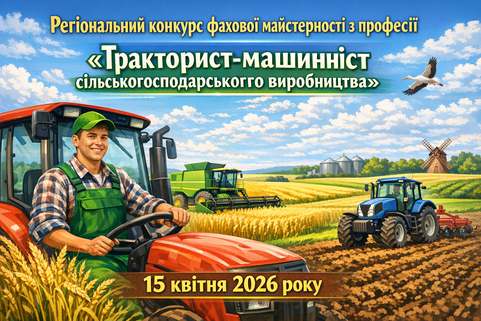 15 квітня 2026 року на базі ДНЗ „Гадяцьке вище професійне аграрне училище” відбувся регіональний конкурс фахової майстерності серед майстрів виробничого навчання з професії „Тракторист-машиніст сільськогосподарського виробництва”.